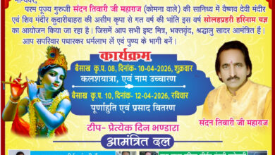कुदारीबाहरा में भव्य’सोलह प्रहरी हरि नाम यज्ञ’ का आयोजन ,10 अप्रैल से गूंजेगा हरिनाम