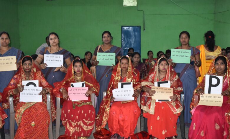 सारंगढ़-बिलाईगढ़, /महिला एवं बाल विकास विभाग के प्रभारी अधिकारी बृजेंद्र सिंह ठाकुर के नेतृत्व में नववधुओ को कुमकुम से मतदाता सम्मान किया गया। नववधुओ का ससुराल के मतदाता सूची में नाम जोड़कर यह सम्मान किया गया है। इस दौरान मेहंदी और रंगोली आदि का कार्यक्रम किया गया। इस अवसर पर सामूहिक मतदाता शपथ दिलाया कि “हम, भारत के नागरिक लोकतंत्र में अपनी पूर्ण आस्था रखते हुए यह शपथ लेते हैं कि हम अपने देश की लोकतांत्रिक परम्पराओं की मर्यादा को बनाये रखेंगे तथा स्वतंत्र, निष्पक्ष एवं शांतिपूर्ण निर्वाचन की गरिमा को अक्षुण्ण रखते हुए, निर्भीक होकर, धर्म, वर्ग, जाति, समुदाय, भाषा अथवा अन्य किसी भी प्रलोभन से प्रभावित हुए बिना सभी निर्वाचनों में अपने मताधिकार का प्रयोग करेंगें |”। इसके साथ साथ सभी ने “सारंगढ़ बिलाईगढ़, सब्बो जाबो वोट दे हे बर” का नारा लगाया। इस अवसर पर बीएलओ, महिला एवं बाल विकास विभाग के अधिकारी कर्मचारी आंगनबाड़ी कार्यकर्ता सहायिका आदि उपस्थित थे।