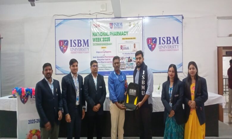 छुरा|| आईएसबीएम युनिवर्सिटी के फैकल्टी ऑफ हेल्थ एंड एलाइड साइंसेस, फार्मेसी विभाग के द्वारा फार्मेसी वीक के अंतर्गत एंपावरिंग स्टूडेंट विथ नेक्स्ट जेनरेशन फार्मोकोलॉजी सिमुलेशन टूल्स फार स्मार्टर फार्मा लर्निंग विषय पर एक कार्यशाला का आयोजन किया गया । कार्यक्रम का शुभारंभ मां सरस्वती के चलचित्र पर माल्यार्पण कर किया गया।