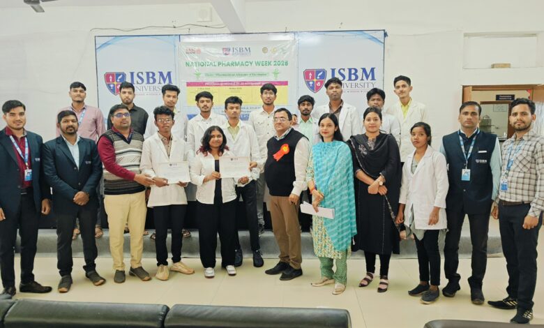 छुरा //। आईएसबीएम यूनिवर्सिटी के फैकल्टी ऑफ हेल्थ एंड एलाइड साइंसेस द्वारा राष्ट्रीय फार्मेसी सप्ताह 2025 के अंतर्गत चतुर्थ दिवस में रील्स प्रतियोगिता का सफल आयोजन किया गया। इस प्रतियोगिता का उद्देश्य छात्रों में रचनात्मकता, डिजिटल कौशल, स्वास्थ्य-जागरूकता एवं फार्मेसी पेशे के प्रति अभिरुचि को बढ़ावा देना था।
